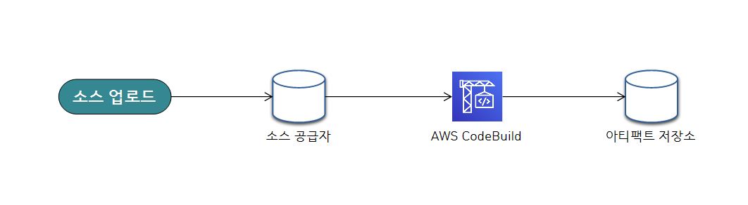 CodeBuild는 아래 그림처럼, 소스 공급자에 소스가 업로드 되면 CodeBuild에서 알아서 가져다가 빌드를 진행합니다. 그리고 빌드가 완료되면 아티팩트(빌드 결과물)를 아티팩트 저장소에 저장합니다.