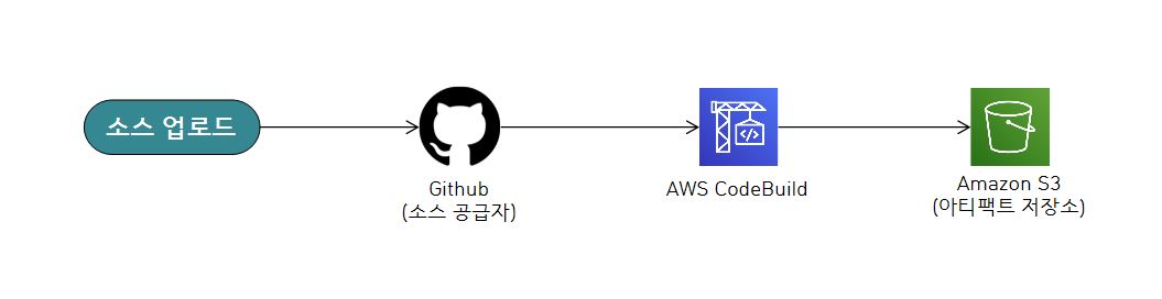 이번 포스팅에서는 CodeBuild를 기초적으로 사용해보기 위해서 아래와 같이 소스 공급자를 Github으로 하고, 아티팩트 저장소를 Amazon S3로 해보겠습니다.