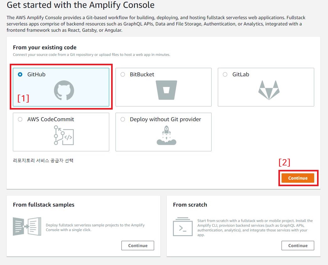 (3) Amplify Console: 정적 웹 호스팅을 위한 서버리스 지속적 배포 서비스