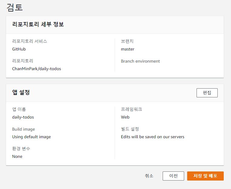 검토단계에서는 이전에 설정한 내용들이 맞는지만 확인하고 맞으면, '저장 및 배포'를 누르면 끝입니다!